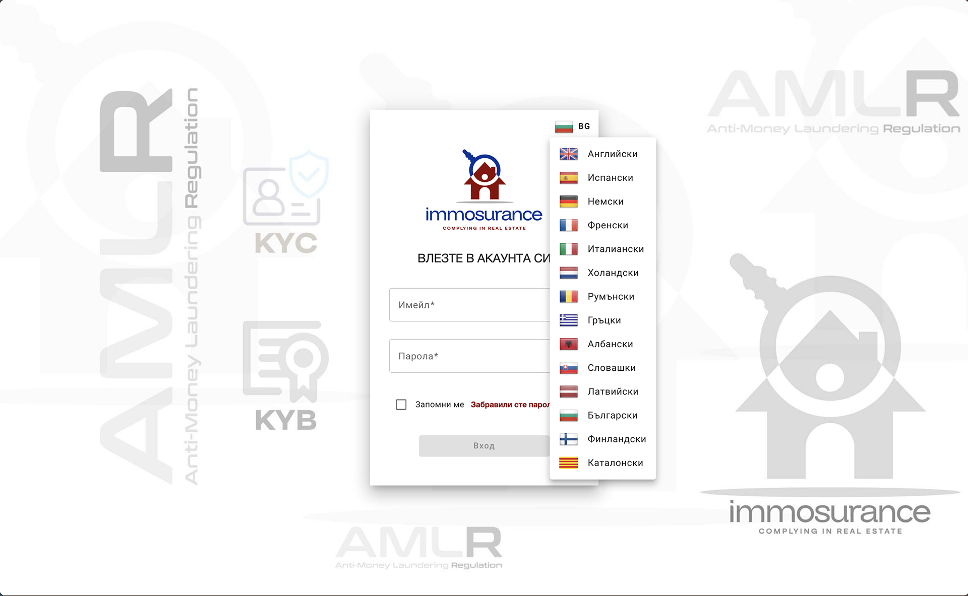 С позната терминология и елементи на данни, които имат смисъл за сектора на недвижимите имоти, Immosurance осигурява практическо използване за всеки потребител, тъй като спазването на изискванията за борба с изпирането на пари е задължение на всеки професионалист в областта на недвижимите имоти!