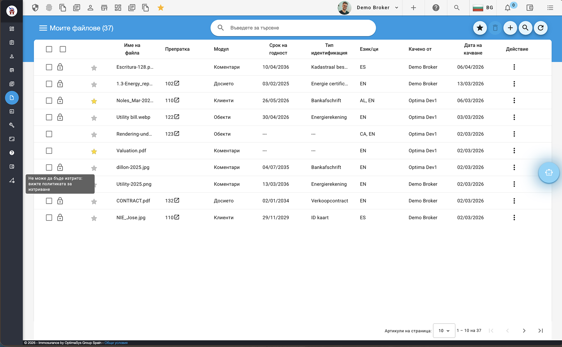 - Политики за изтриване и изтичане на срока на валидност на документите